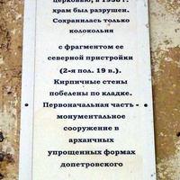 В советское время церковь закрыли. В 1938 году церковь разрушена. Сохранилась столпообразная шатровая колокольня.
